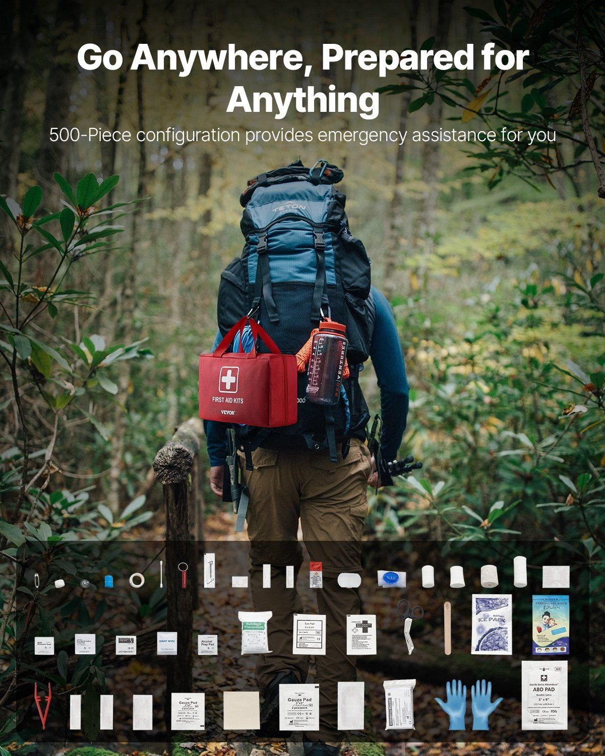 Made from durable nylon, our emergency kit is wear-resistant to keep your medical supplies secure in any condition. Multiple compartments efficiently organize 500 first aid items for easy access. Tested to high health standards, it is ideal for outdoor adventures, travel, or everyday use.