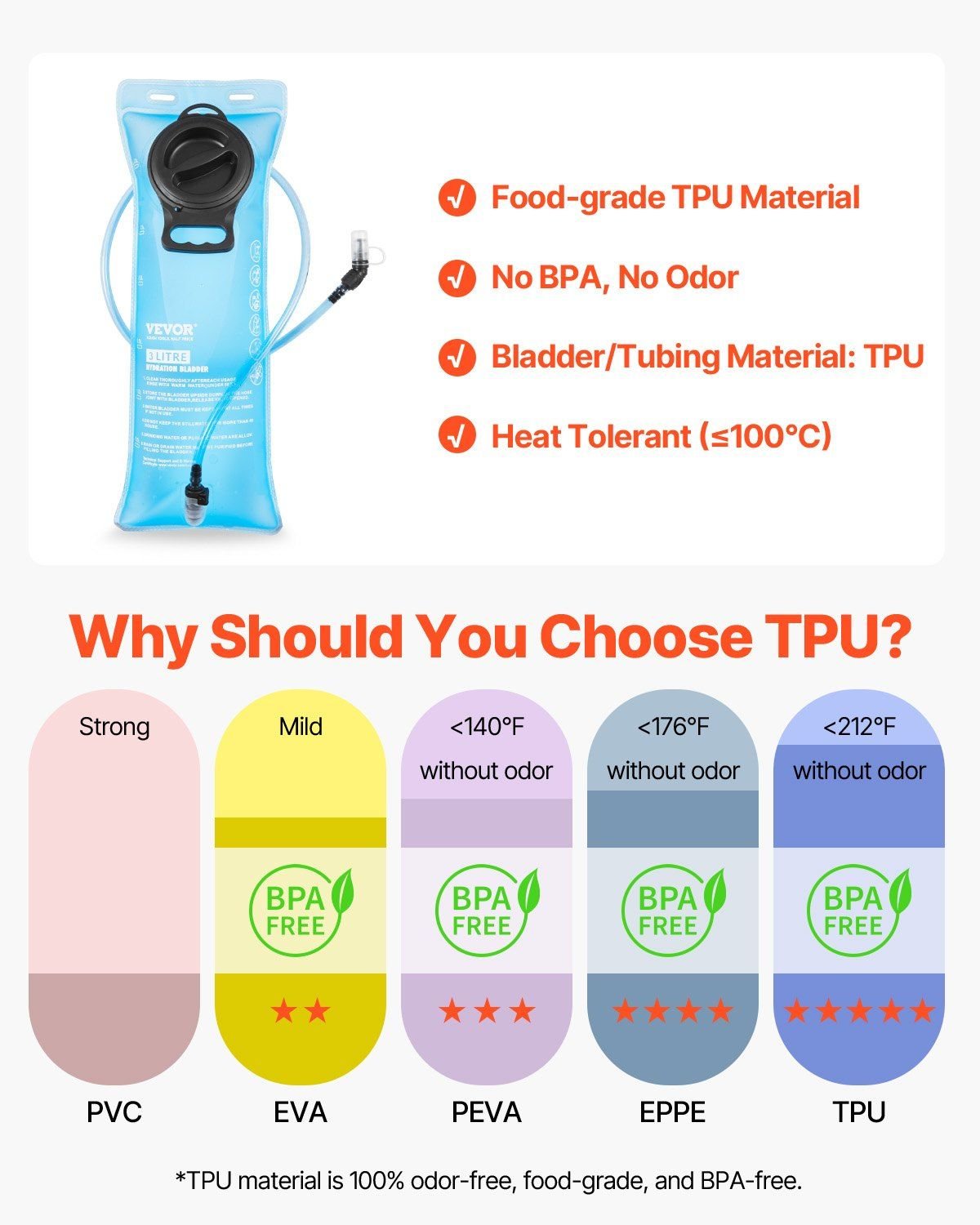 2.3L Practical Water Bladder: The hiking backpack with hydration bladder includes a food-grade TPU water bladder, ensuring a pleasant drinking experience. Its leak-proof automatic shut-on/off valve and sealed detection technology avoid leak risks, providing you with peace of mind.