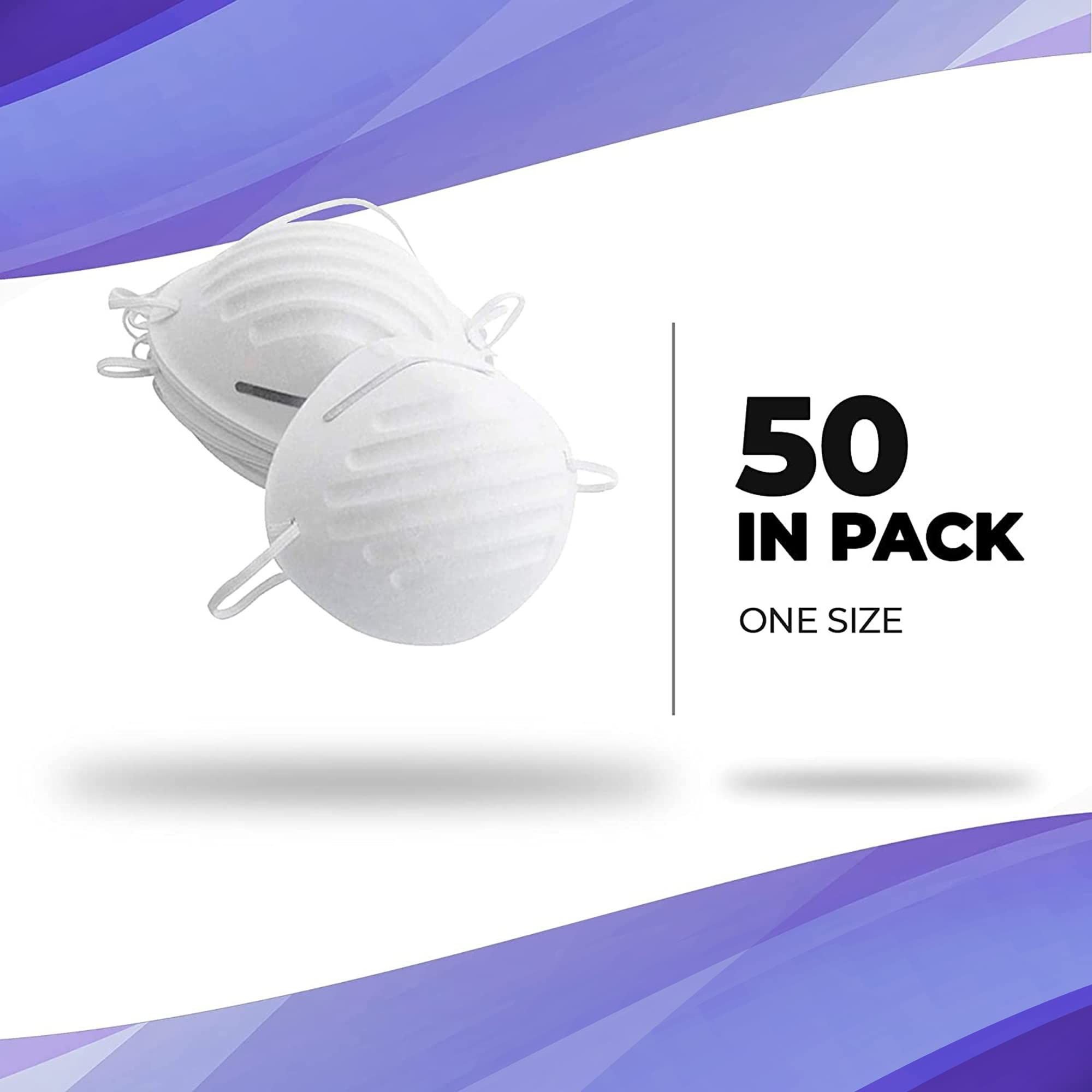 Home > Dust and Particle Masks. Pack of 50 Disposable Respirator with Elastic Strap Dust and Filter Safety Masks for Non-Toxic Dust, Pollen, Danger, sawdust